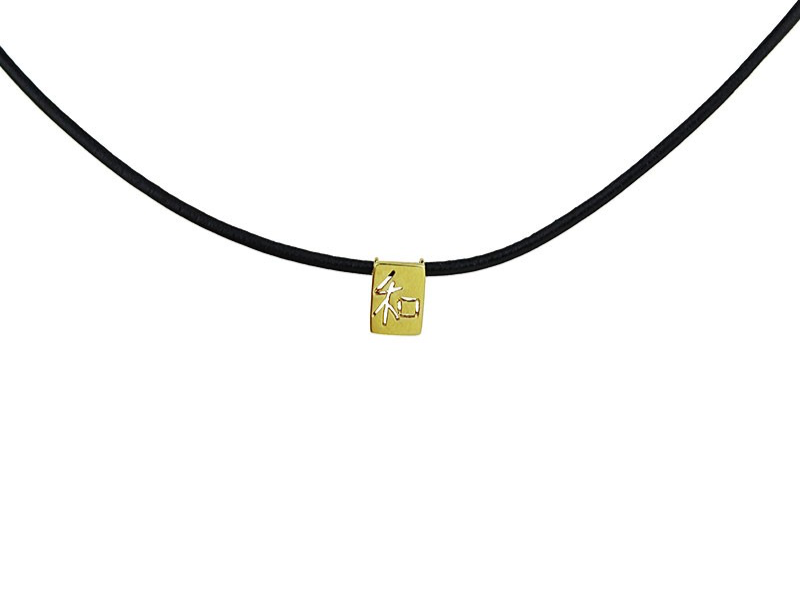 Collar de piel con colgante de oro amarillo de 18 Ktes. símbolo de caligrafía Kanji “WA”, “PAZ, HARMONIA y CALMA».