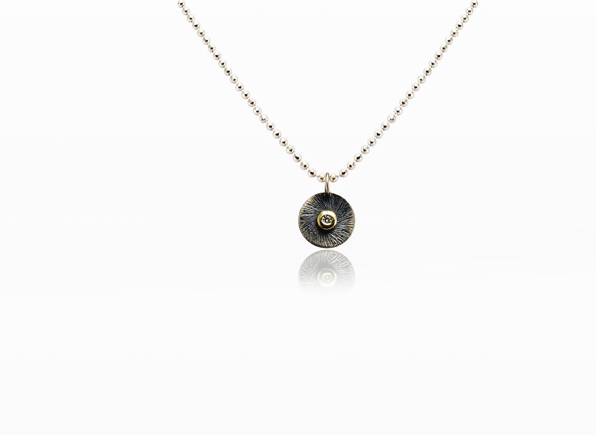 Penjoll de plata de llei mat rovellada amb boca d'or groc de 18Ktes i diamant blanc. *Aquest article no inclou la cadena