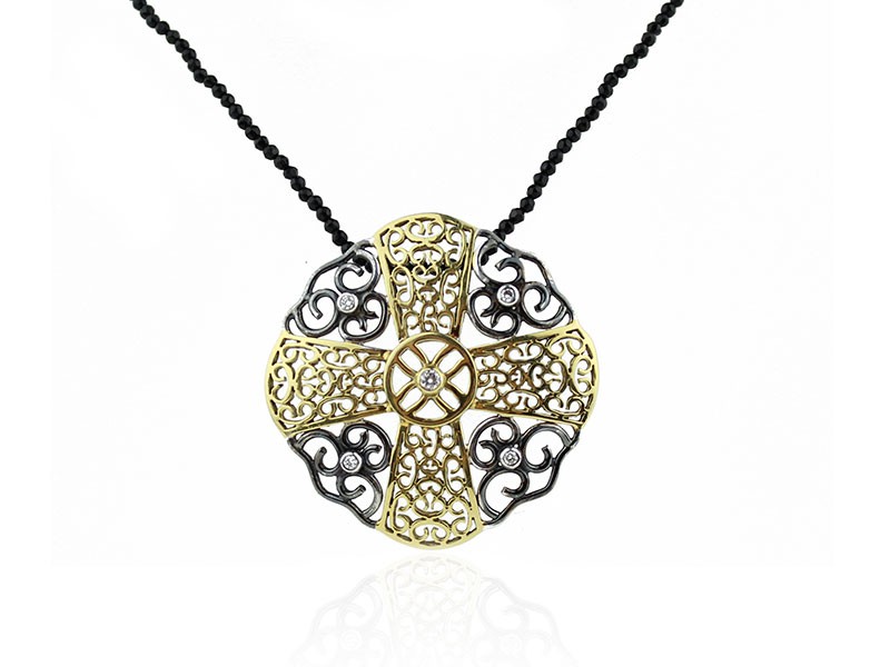 Penjoll d'or groc de 18 Ktes. i rodi negre amb 5 brillants de 0.04 cts. *Aquest article no inclou la cadena.