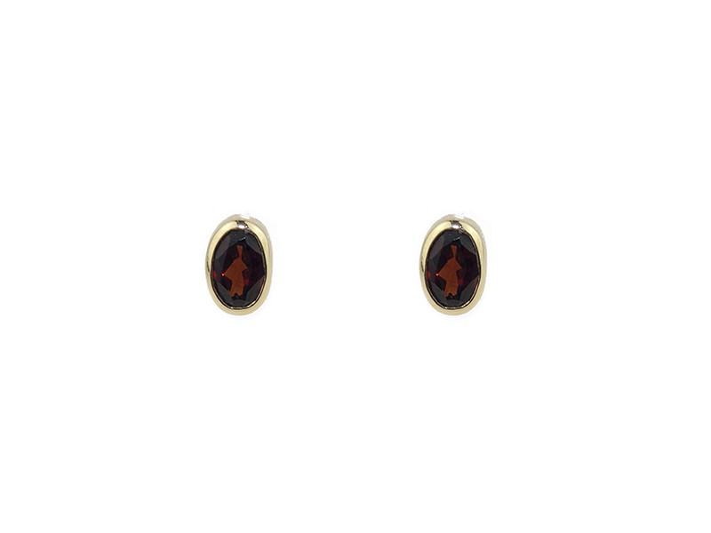 18kt yellow gold earrings with oval garnets. Push-back closure.