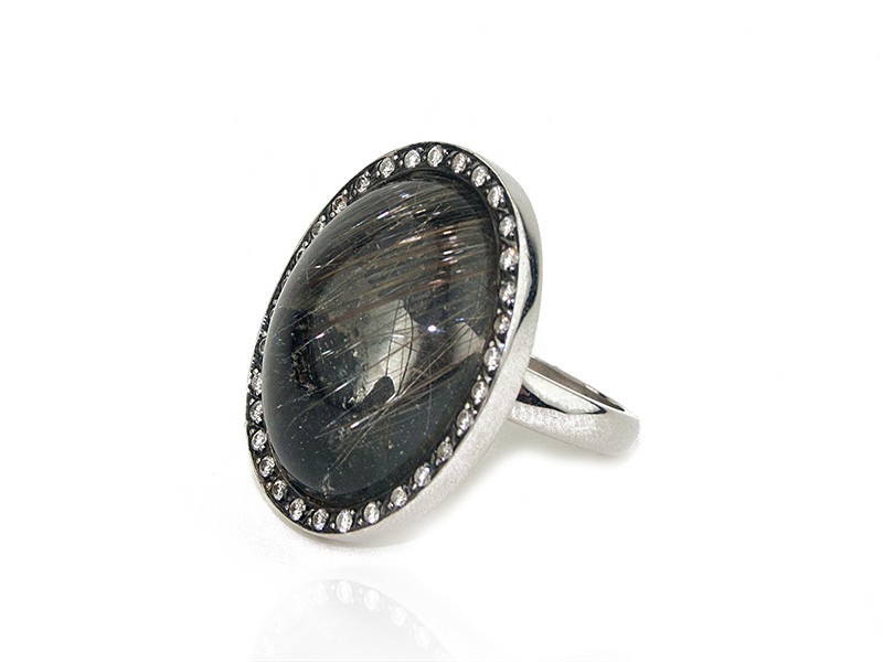 18K white gold ring with tourmaline quartz and a brilliant-cut diamond border. 32 brilliant-cut diamonds weighing 0.02 ct.