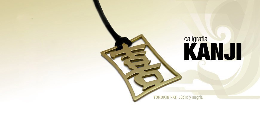 Leather necklace with a yellow gold pendant featuring the Kanji calligraphy symbol “WA.”
