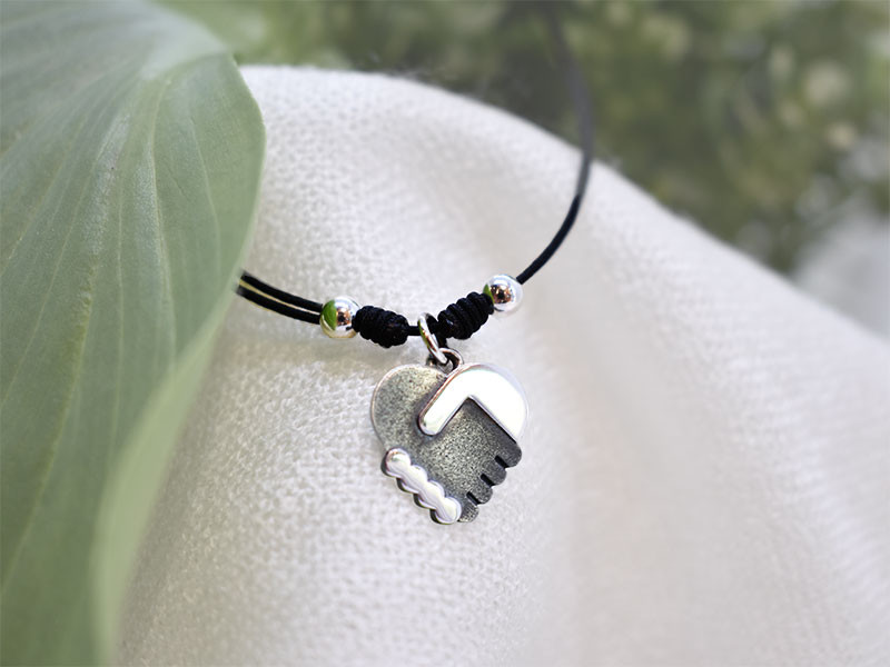A piece made of polished and dark satin-finished 925mm white silver. Mounted with sliding knots.