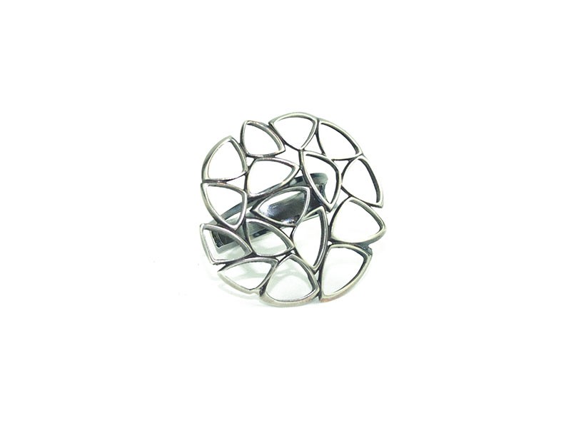 Ring in yellow gold and oxidized silver, with 3 white diamonds.