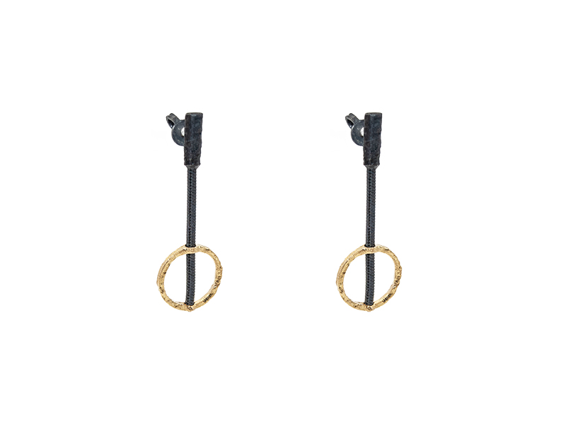 Pendientes de plata de 925 mm oxidada con oro amarillo de 18 kt. Acabado mate. Largo 3 cm.
