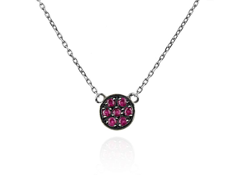 Pavée pendant with 6 natural rubies with oxidized silver chain.