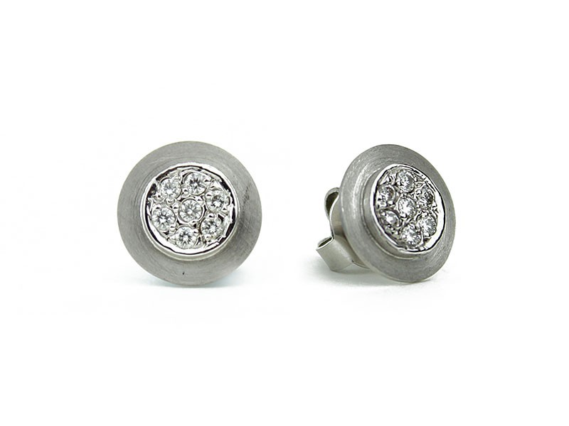 Matte 18-karat white gold earrings with six 0.02-ct brilliant-cut diamonds. Push-back closure.
