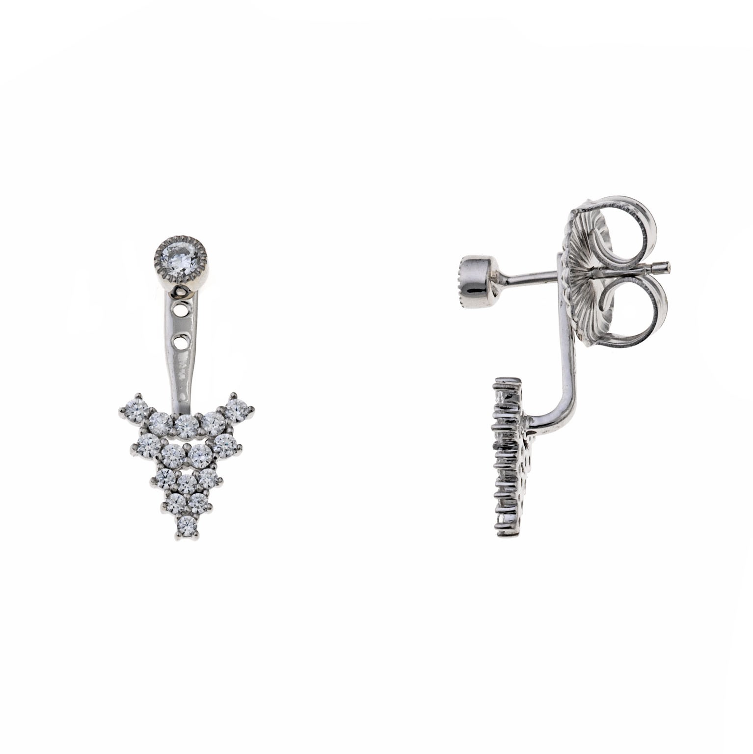 White rhodium-plated silver earrings with cubic zirconia. Detachable with snap closure.