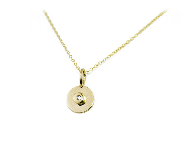 Colgante oro amarillo pulido de 750mm, tipo placa, con 1 Brillante natural de 0.02cts.